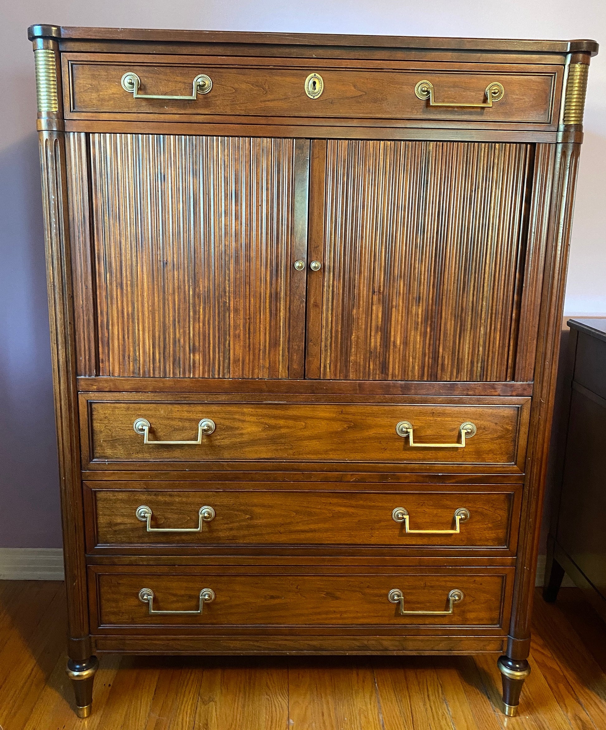 Gentleman’s Chest Highboy Dresser: Length: 39 in., Width: 19 in., Height: 54 1/2,