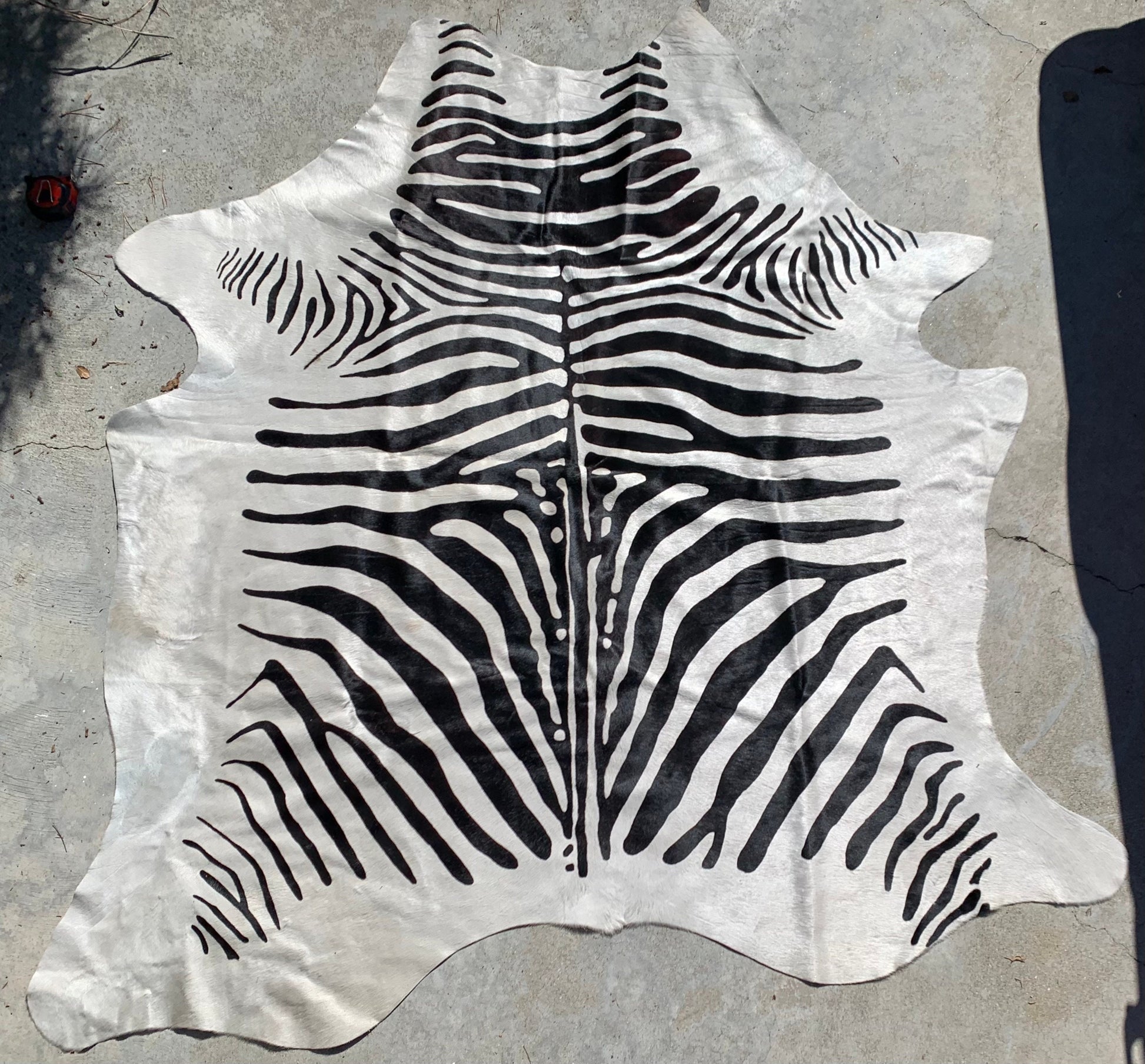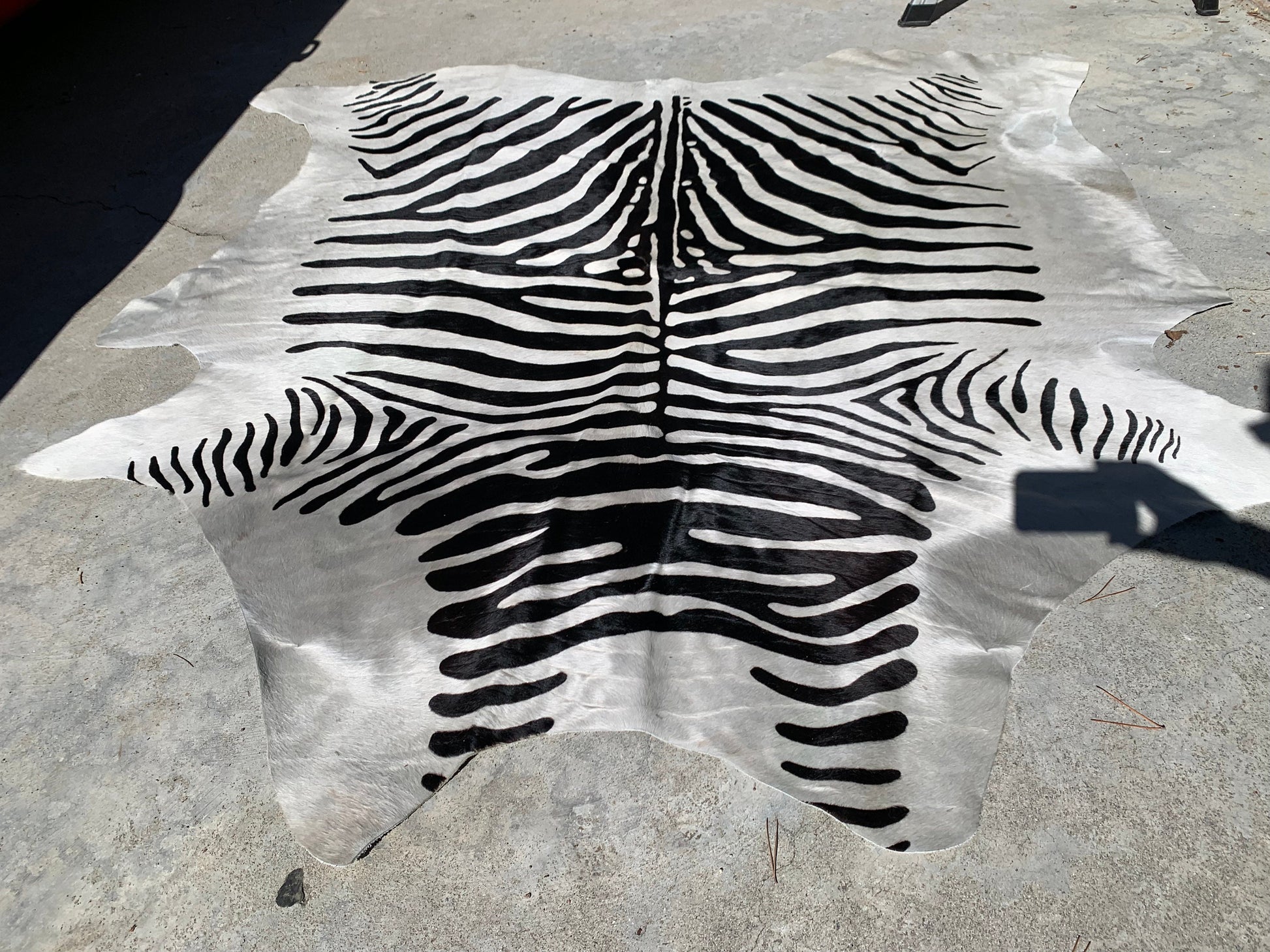 Hair on hide zebra pattern wall hanging. Large scale, suede on back side.