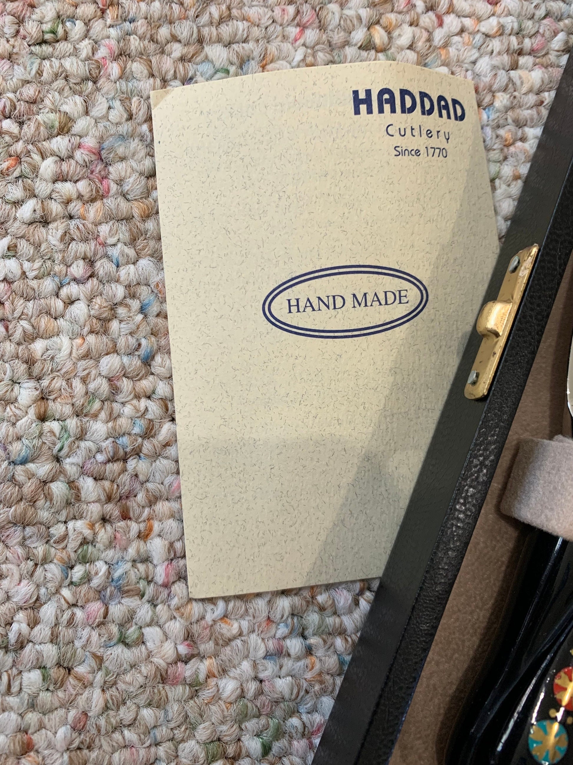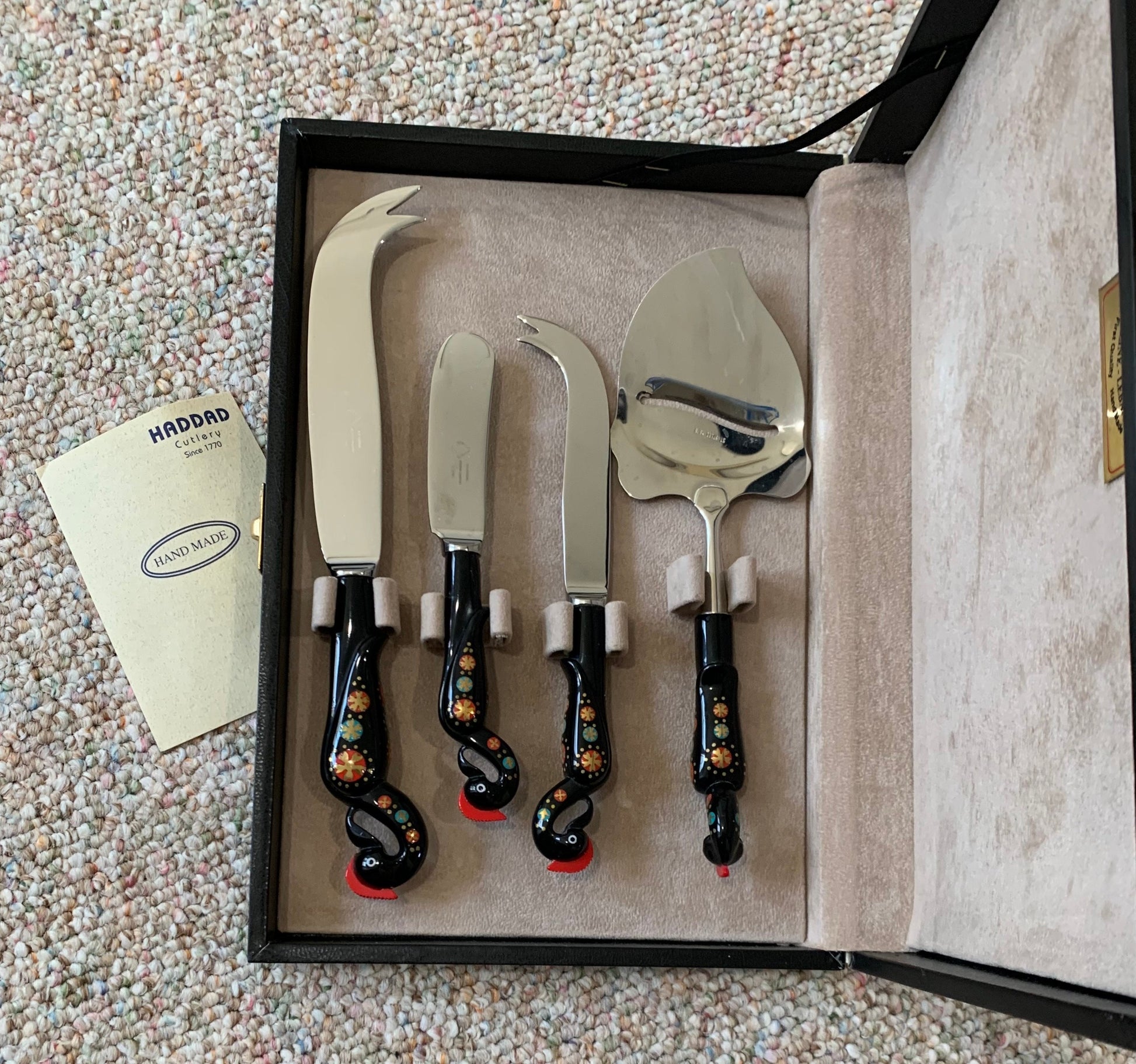 Late 20th Century Vintage Lebanese Cheese Knife Set. New - never used in box.