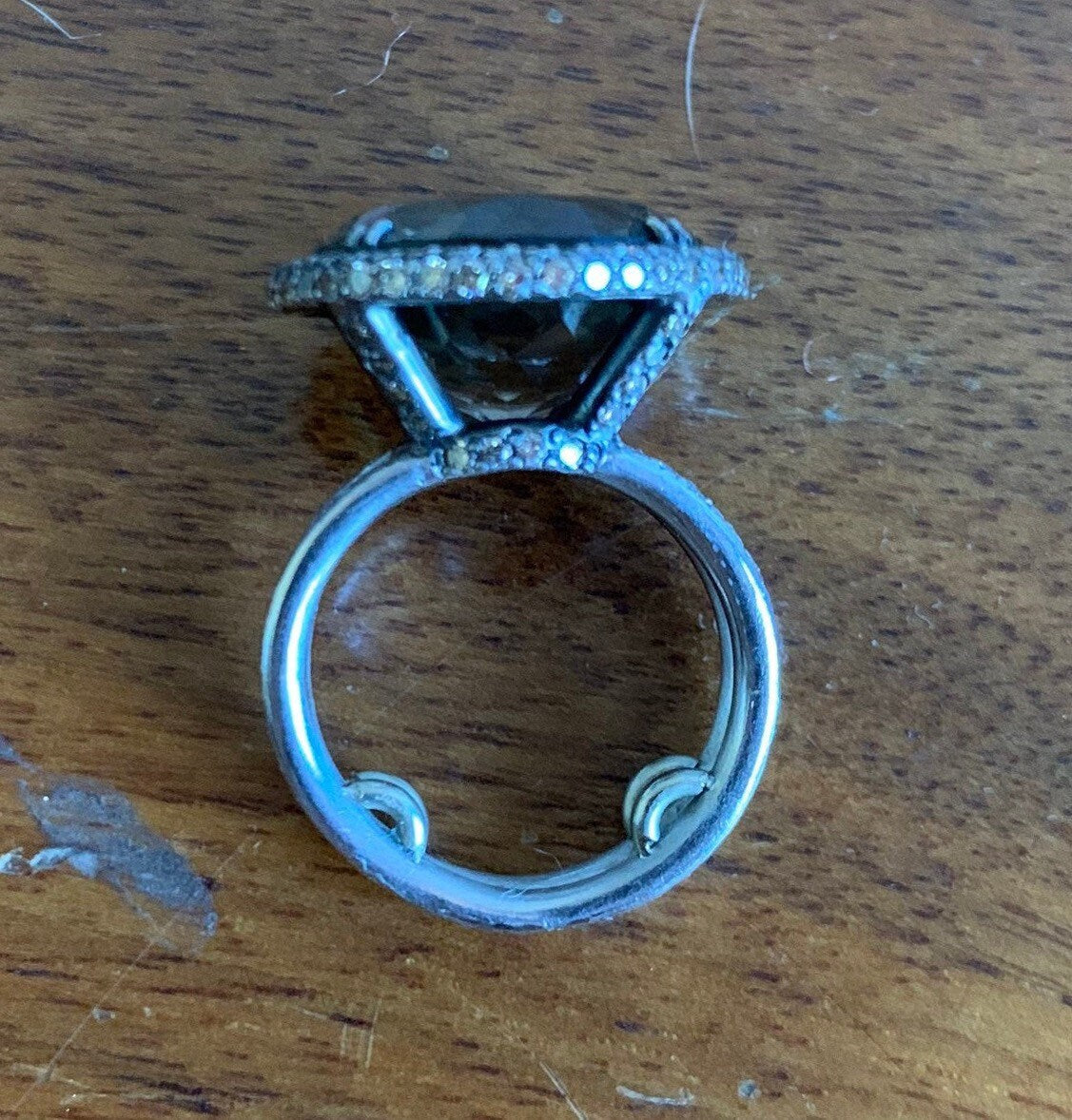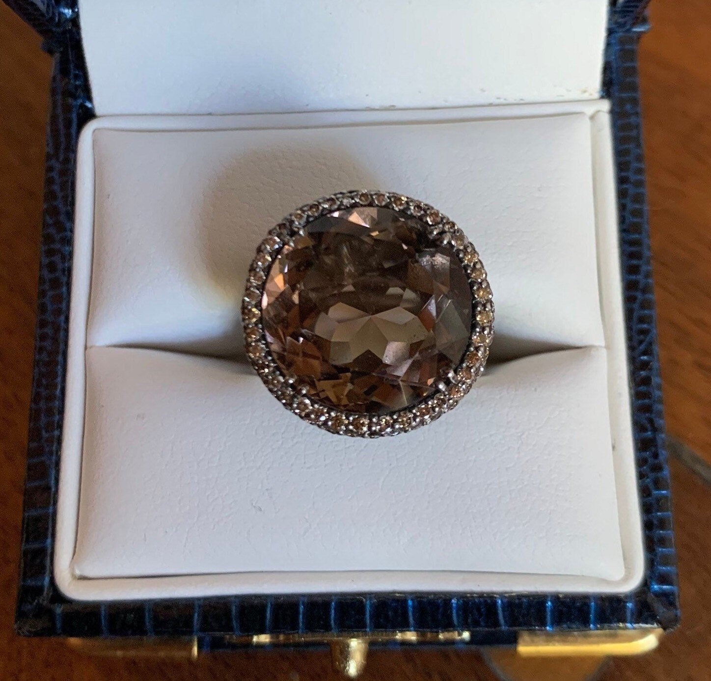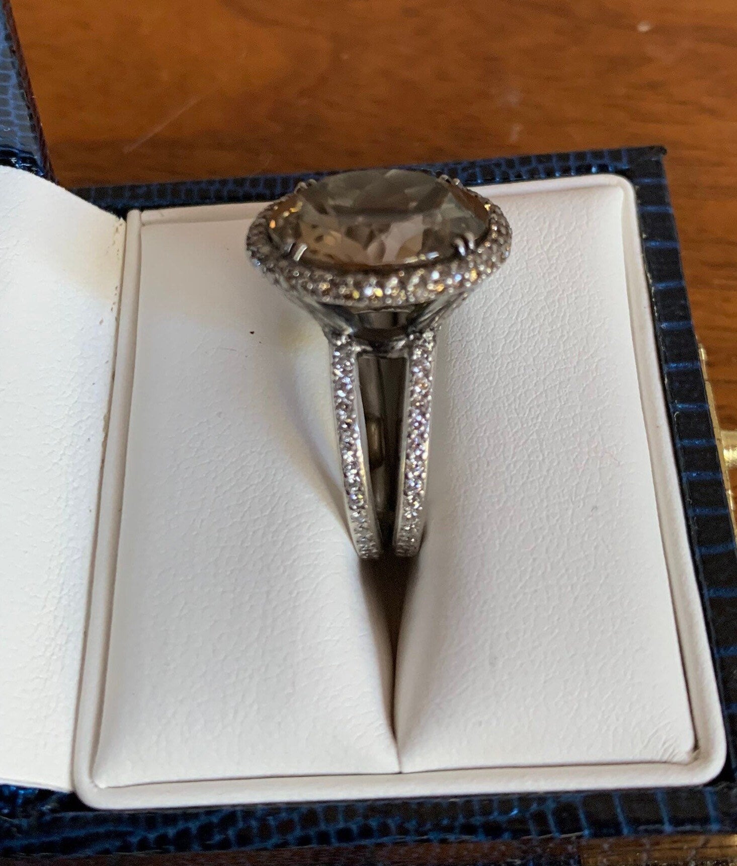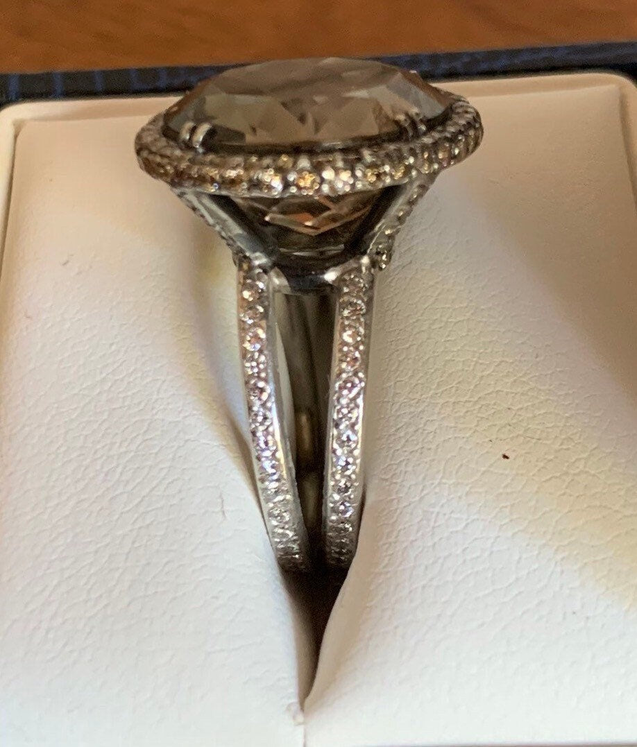 Smoky topaz and diamond ring in platinum. Size 4 1/2