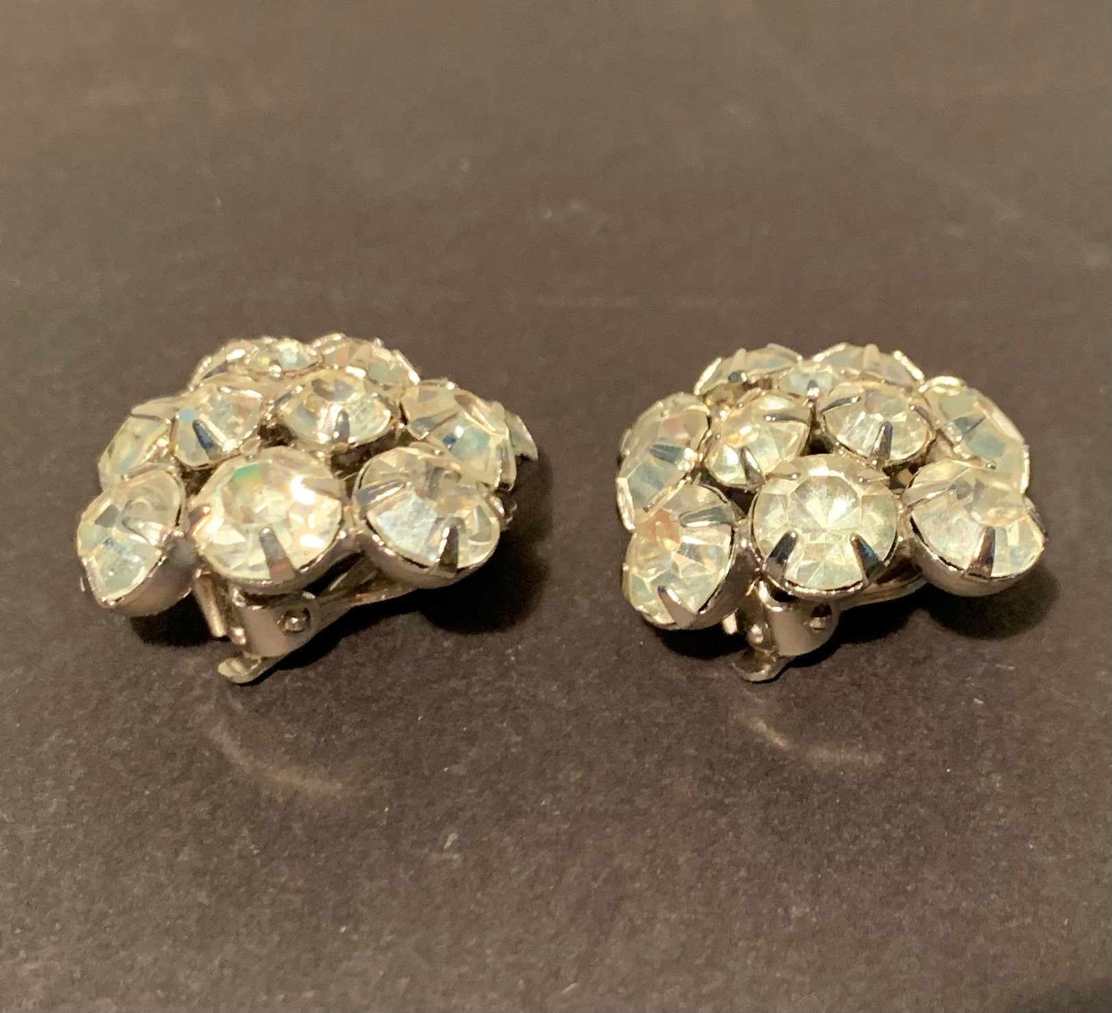 Vintage 1930s rhinestone earrings worn by a famous fashion model from the 1930s
