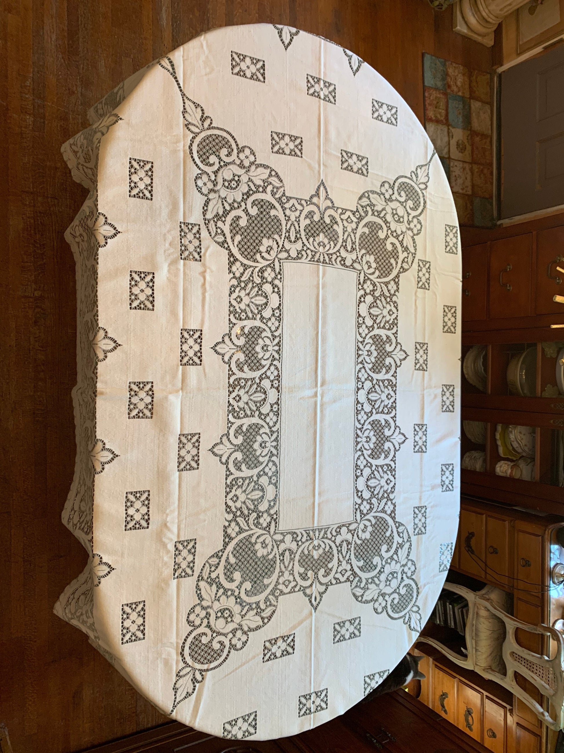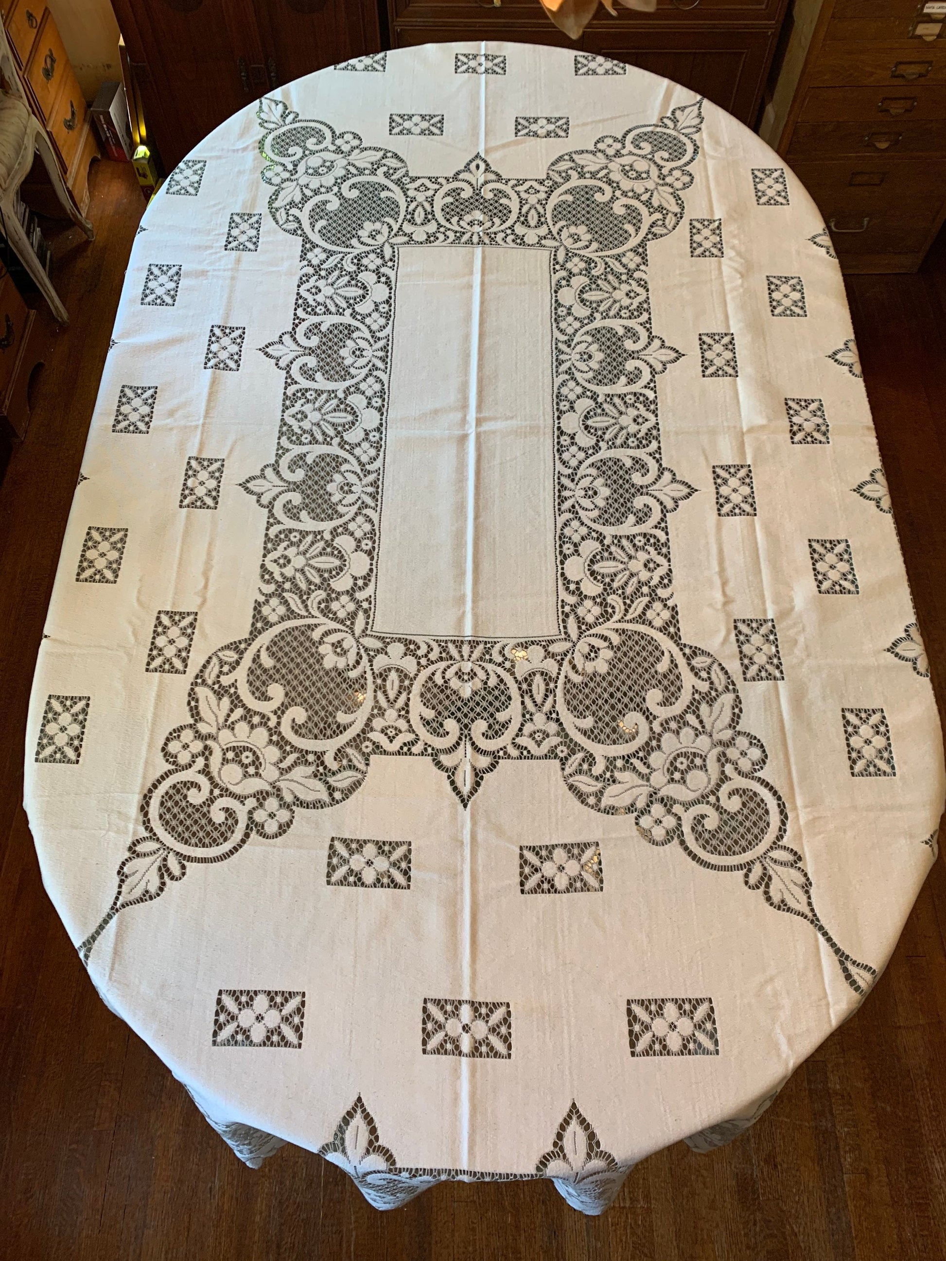 Vintage Cotton Linen Lace Tablecloth