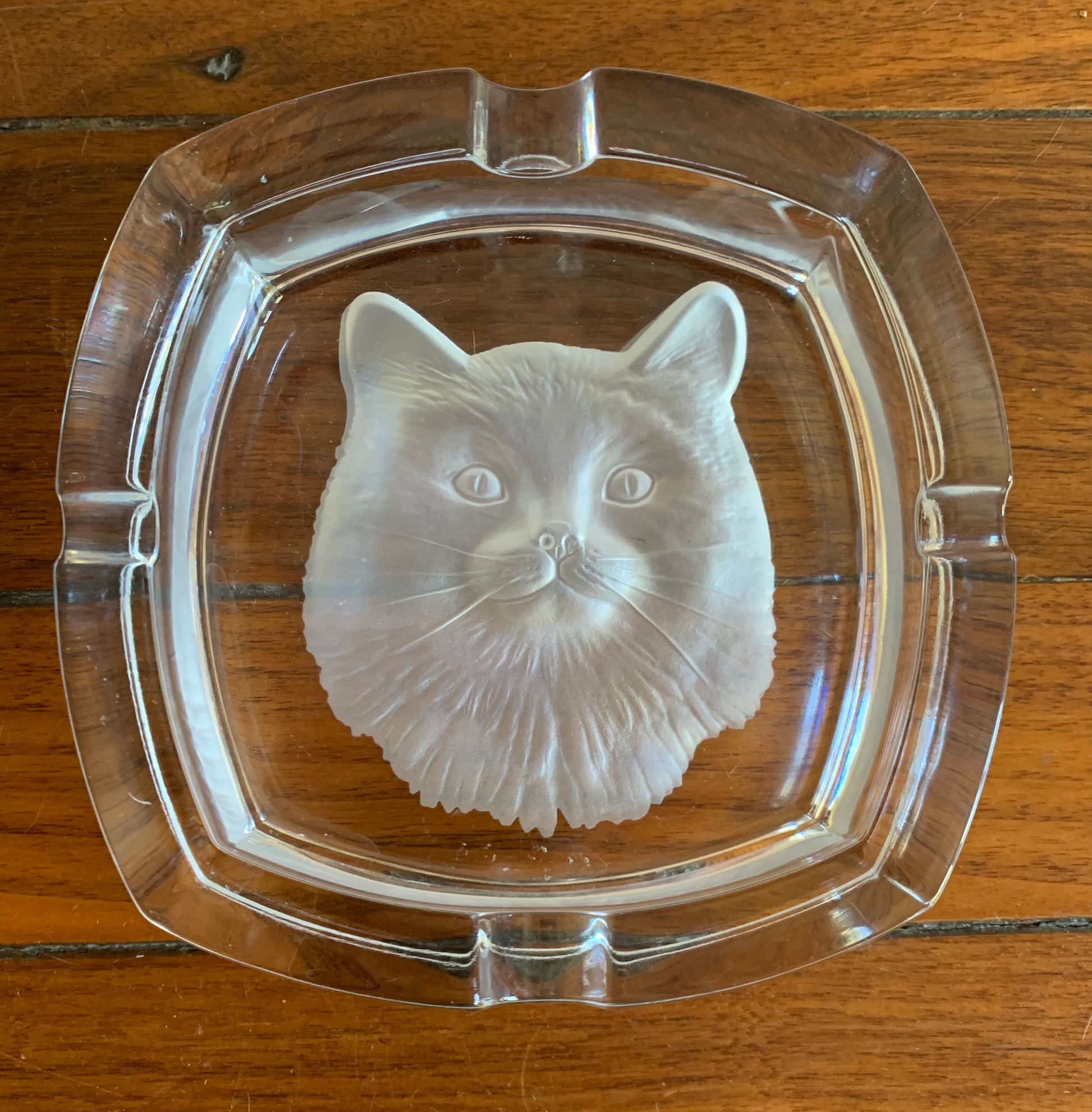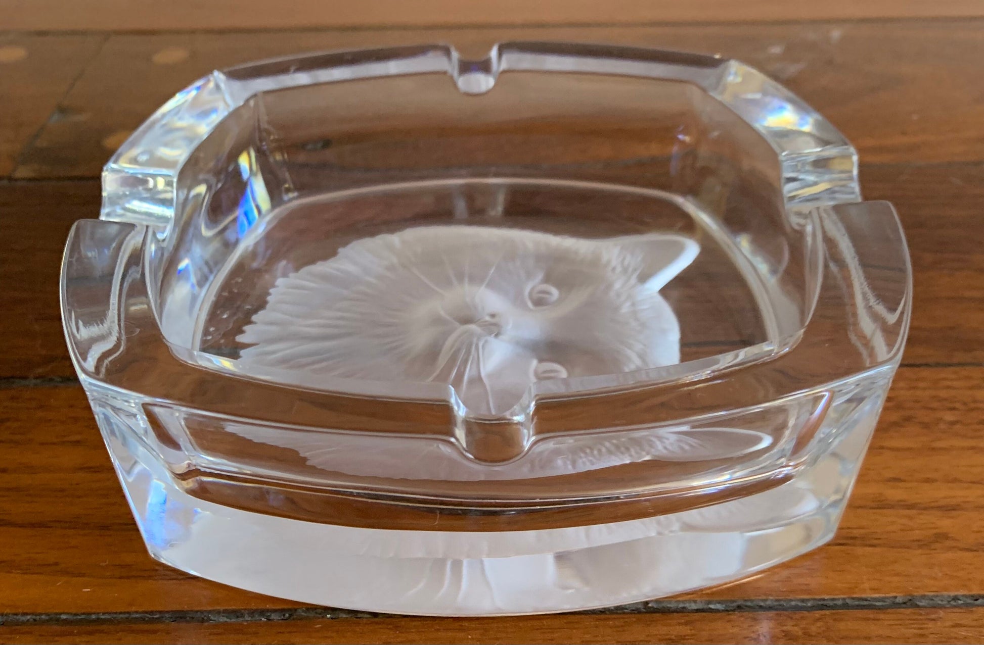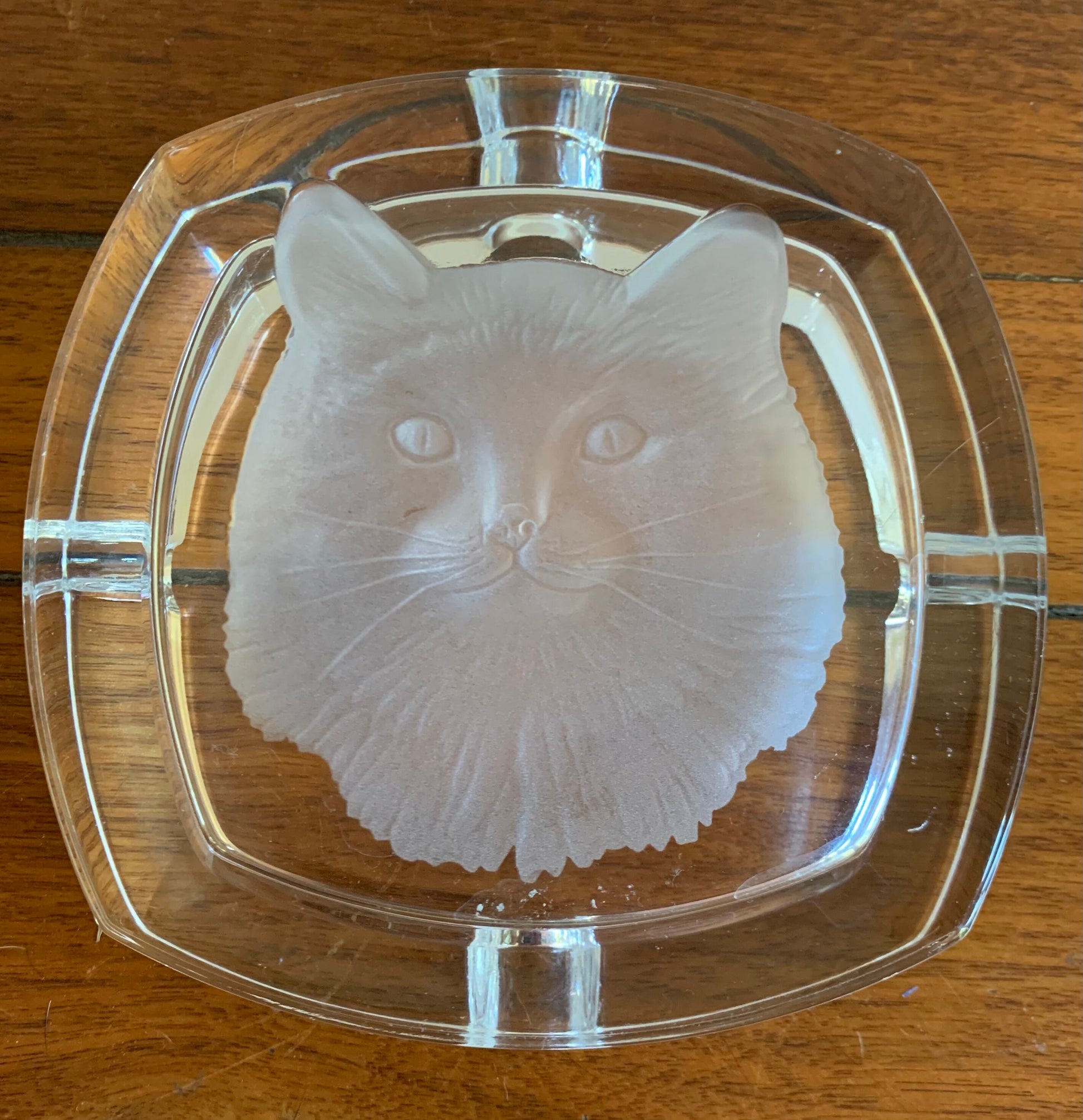Crystal Cat ash tray. 5"W x 5"D x 1 1/2"H