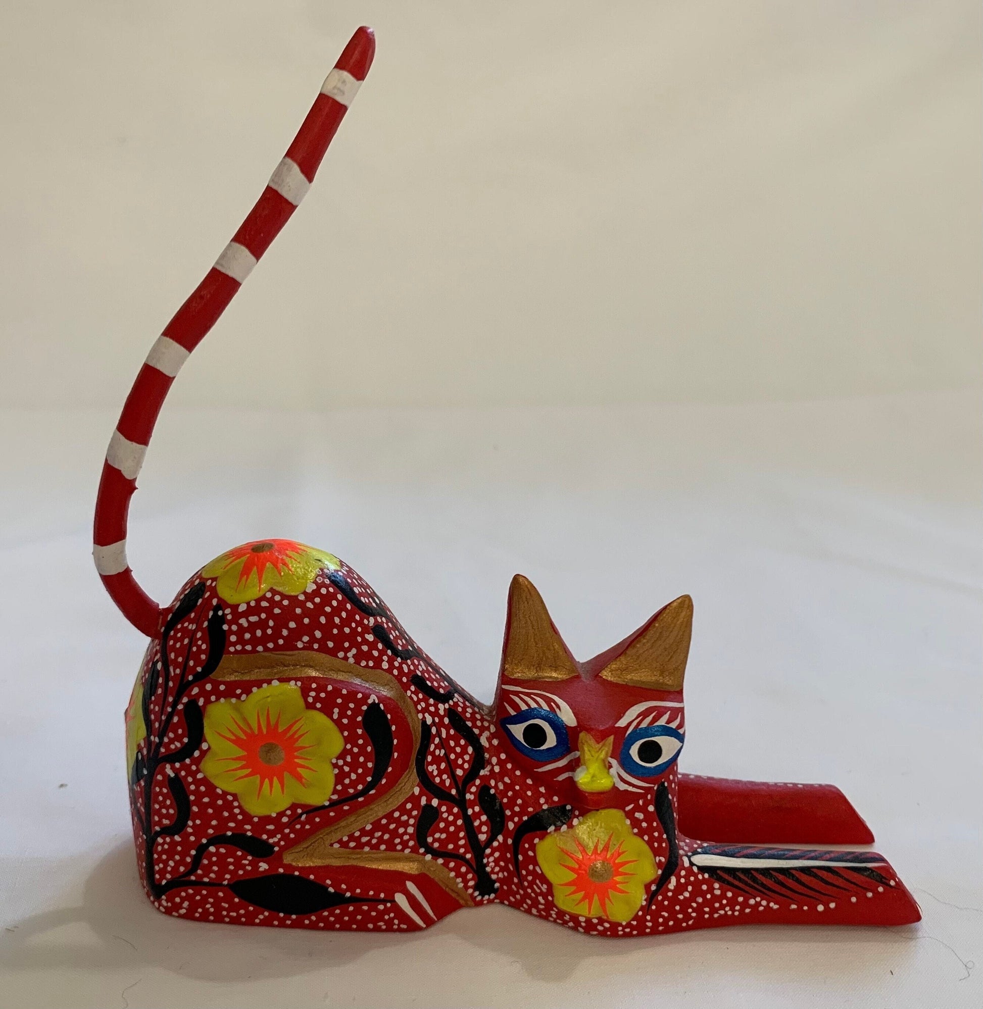 Vintage Mexican Painted Wood Cat Figurine from Oaxaca Mexico