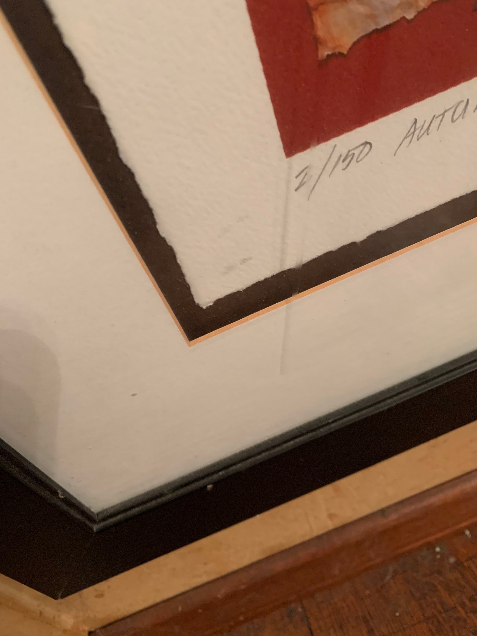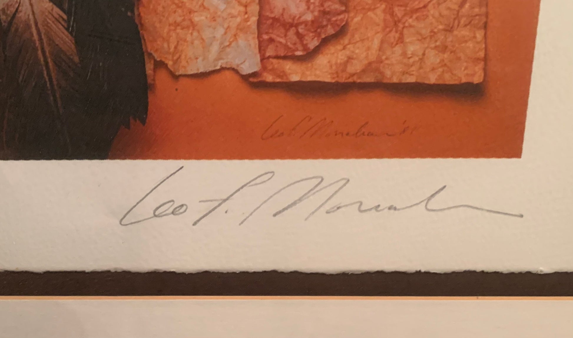 Vintage lithograph "Autumns Shirt" is an abstract print with Native American motifs. The lithograph is framed, mounted on hand pressed paper and signed by the artist 2/150