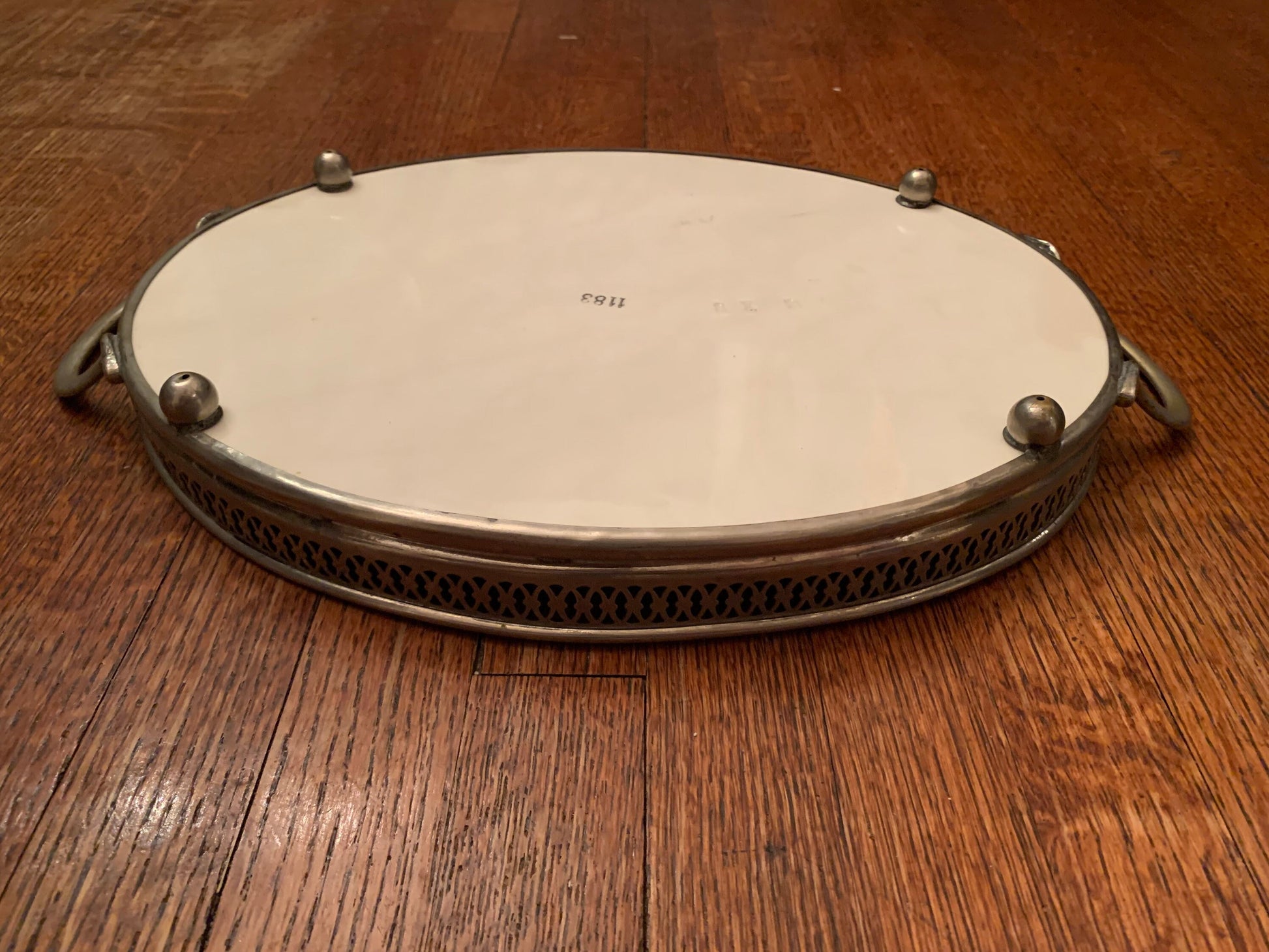 Vintage Oval Hand Painted Porcelain Tray of Lions in the wild