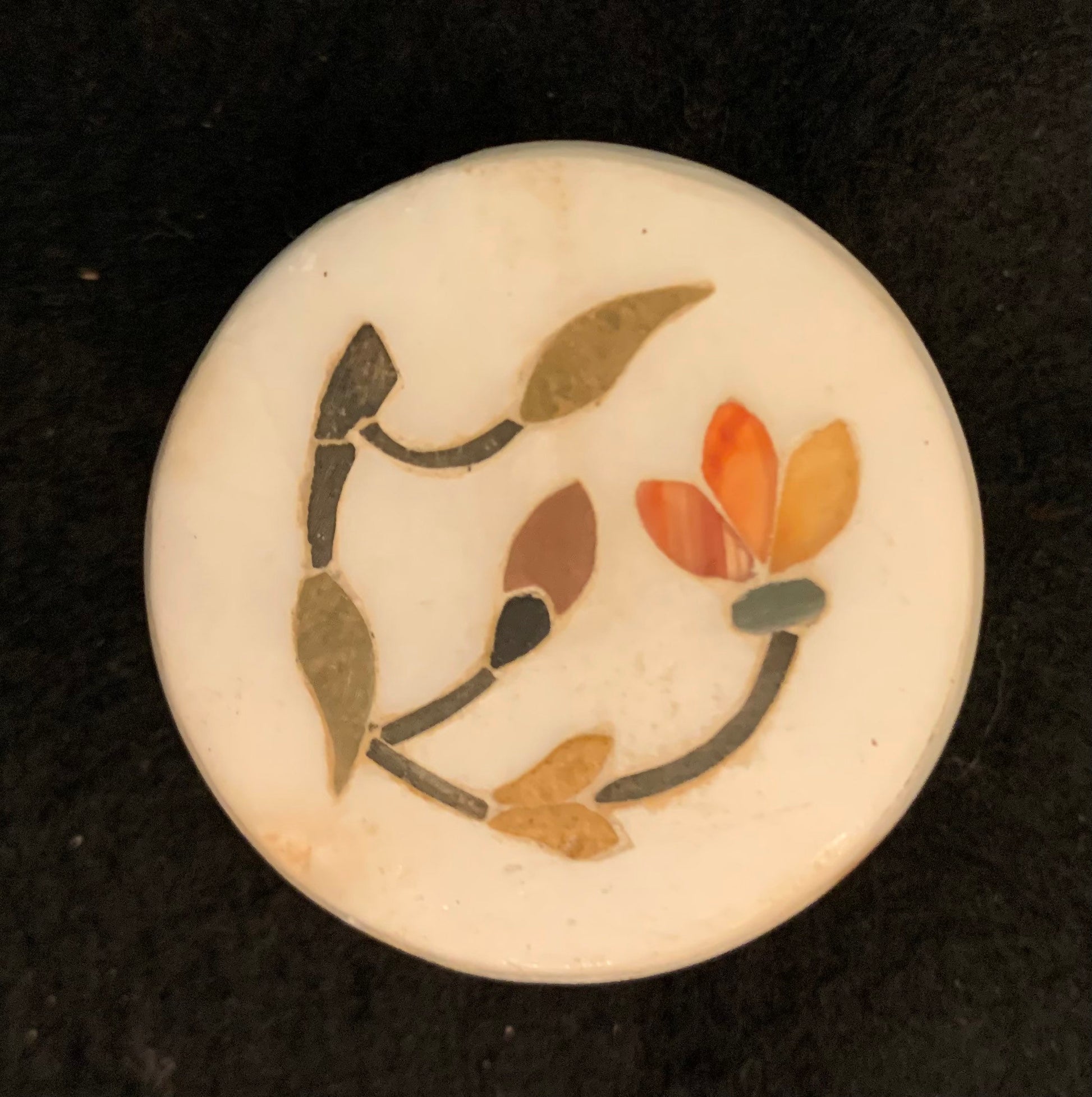 Vintage Round Inlaid Marble Box with floral motif made in India.